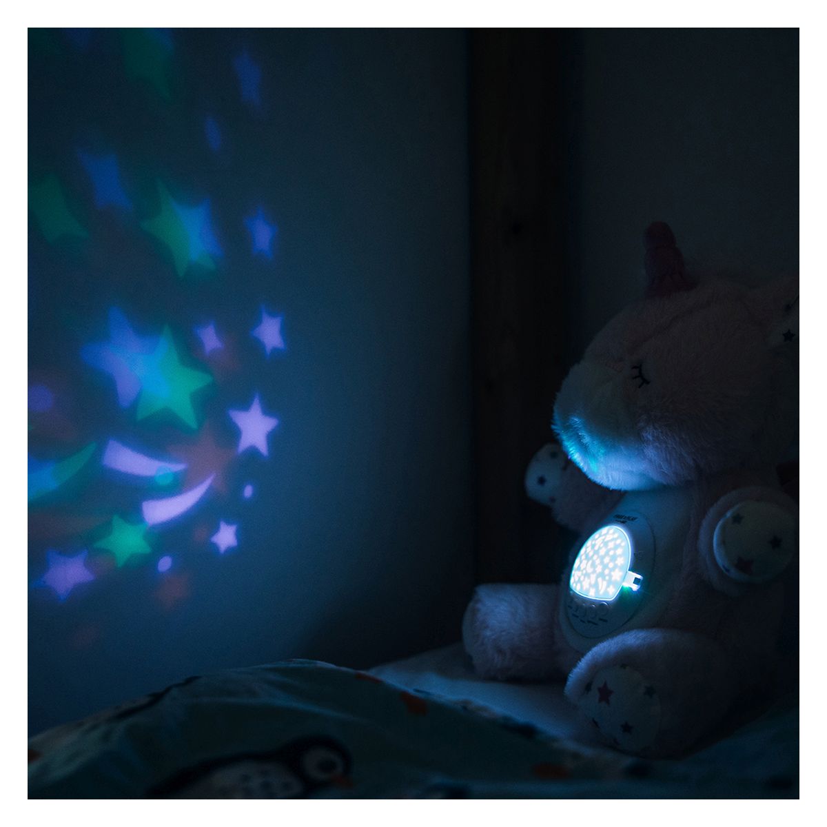 Glazbeni modul možete ukloniti s jednoroga i oprati ga u perilici rublja. Glazbeni modul se može koristiti i samostalno. Pogodno od rođenja nadalje.