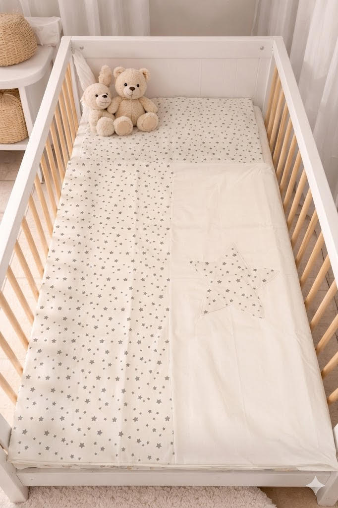 Set posteljine od 100% pamuka pruža nježnost, prozračnost i udobnost potrebnu za miran dječji san. Prirodni materijal nježan je prema koži i omogućuje dobru cirkulaciju zraka.