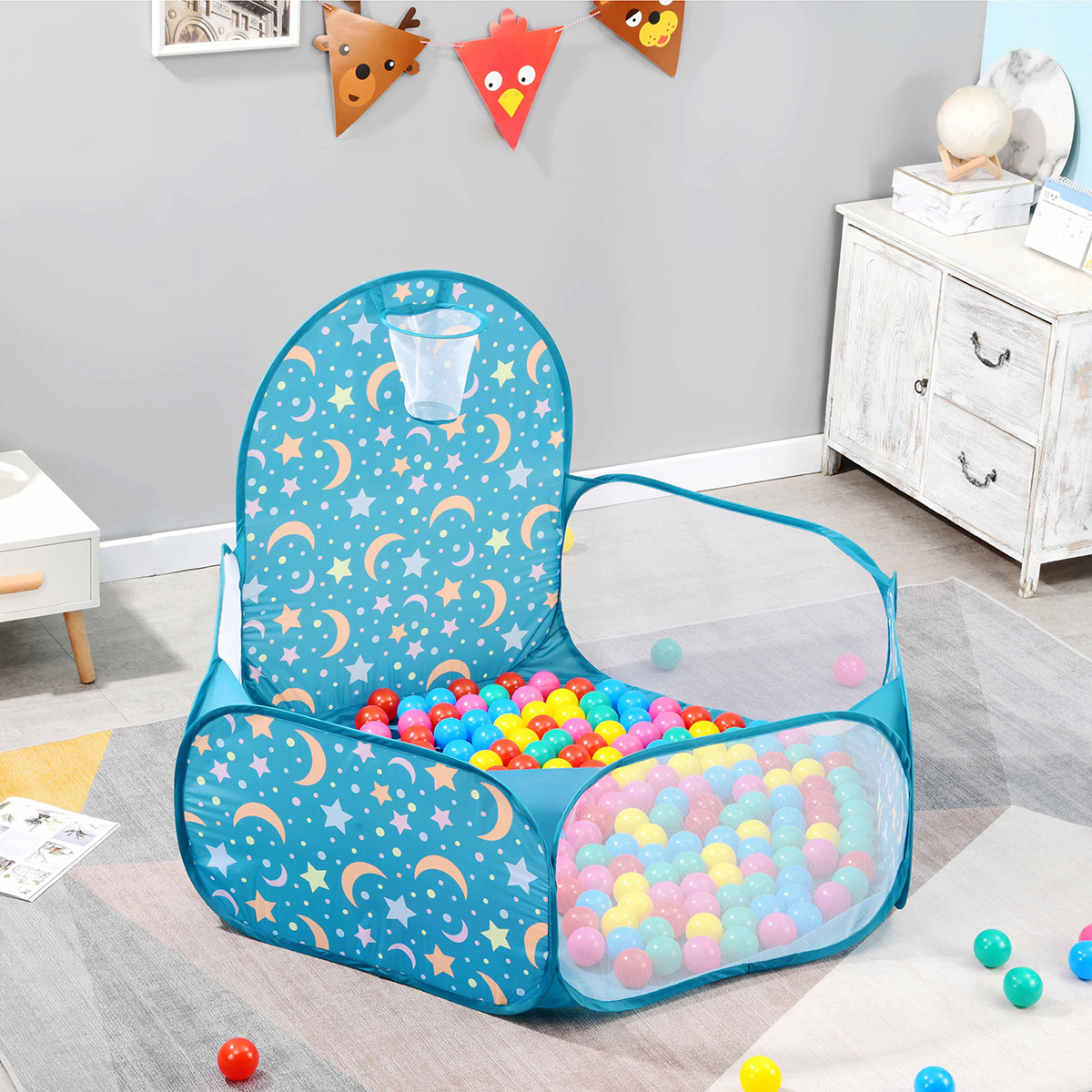 Namijenjen je za unutarnju i vanjsku upotrebu. Na stražnjoj strani šatora se nalazi koš u kojeg dijete može bacati loptice.