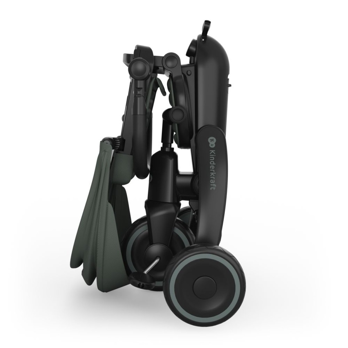 Praktični okvir omogućuje brzo sklapanje u kompaktne dimenzije, što idealno za pohranu i transport. Tricikl se može stabilno odložiti okomito ili vodoravno, a dvostruka blokada sklapanja povećava sigurnost pri nošenju i vožnji u prtljažniku.