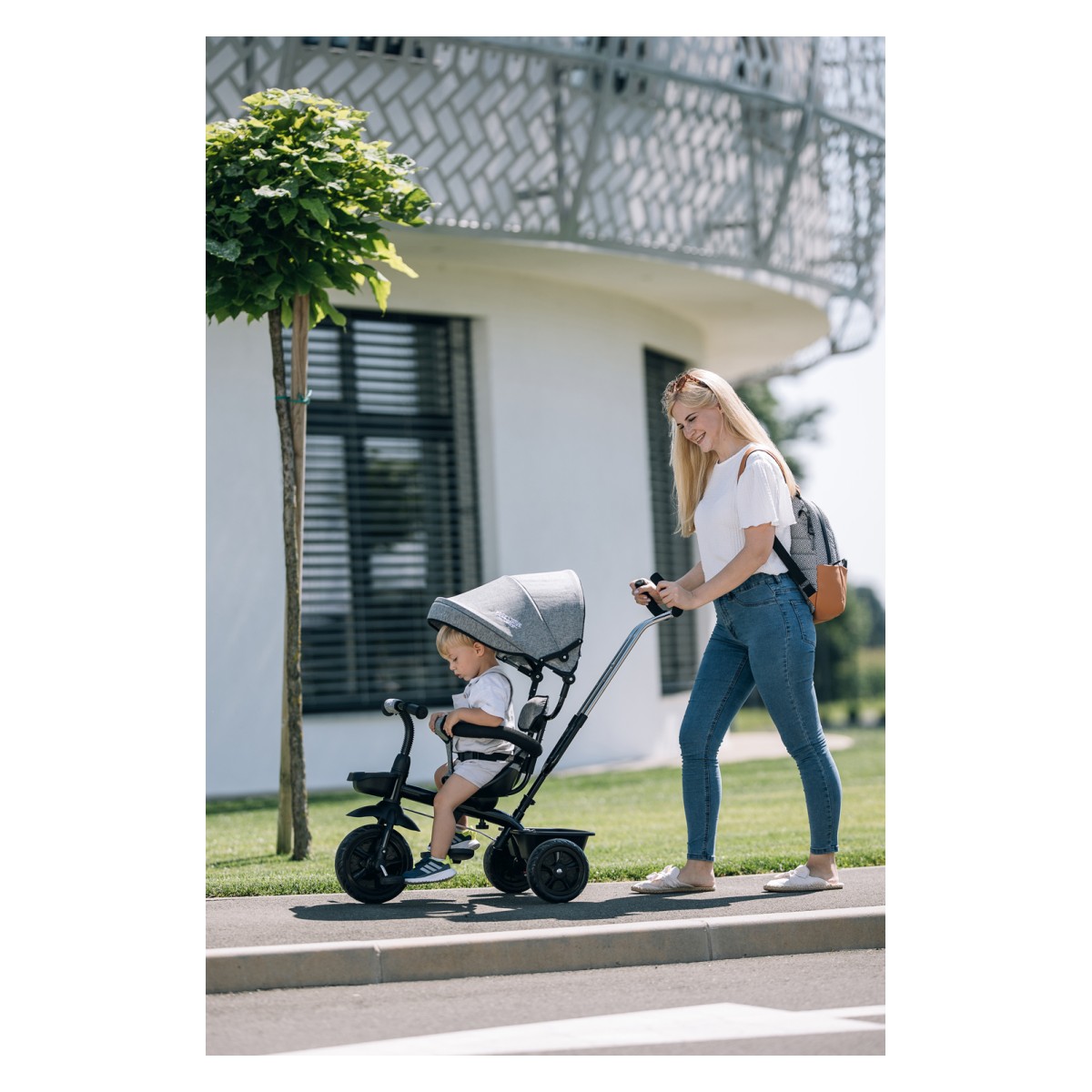 Udoban i siguran tricikl idealan je izbor za duge šetnje u prirodi. Dijete će tijekom ugodne vožnje znatiželjno promatrati okolinu. Roditelje će s druge strane oduševiti potpuni nadzor nad vožnjom i lakoća upravljanja.