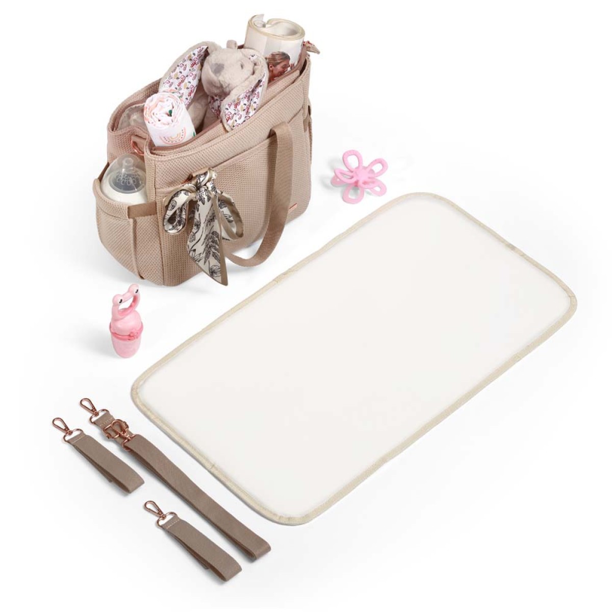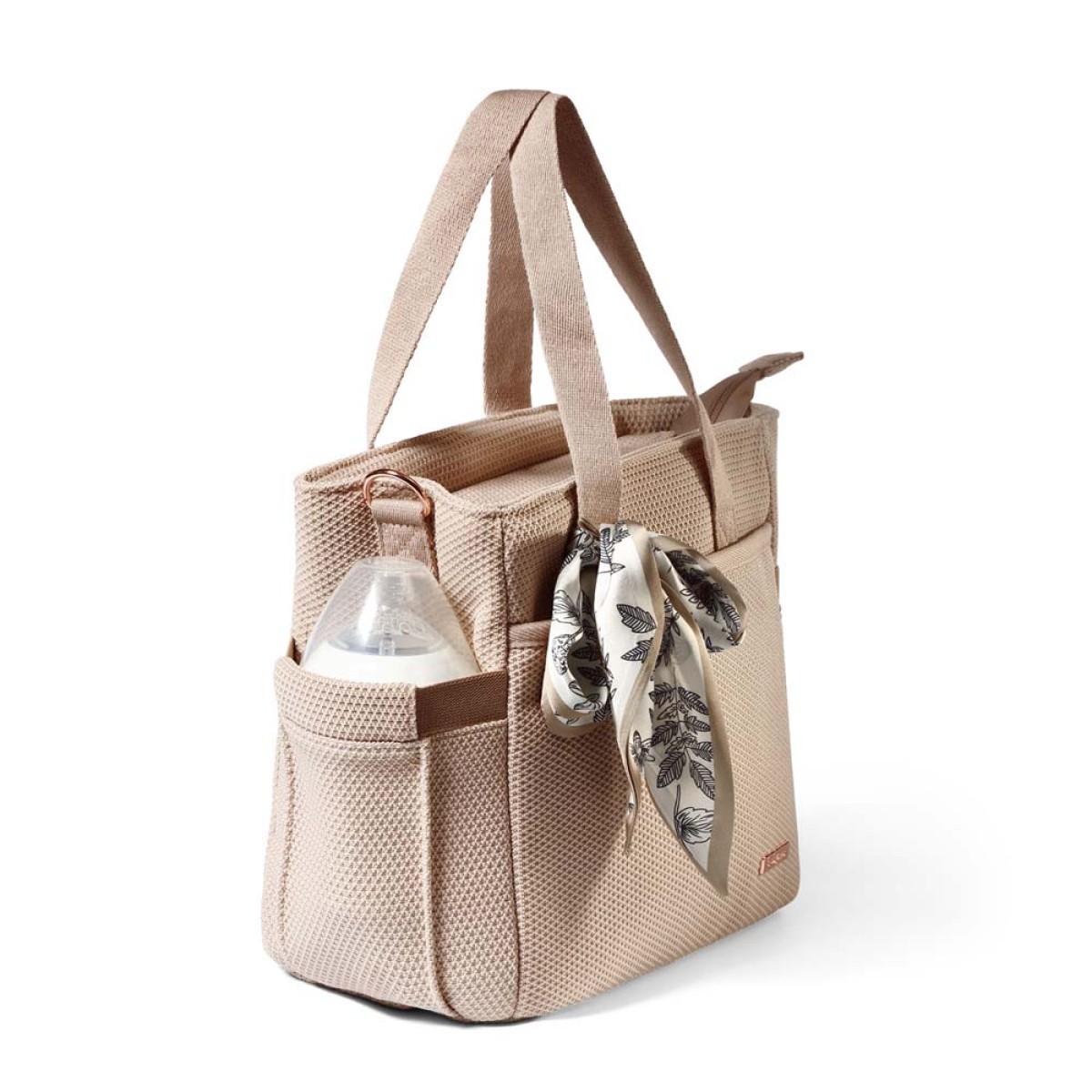 Torba je odličan dodatak svakom outfitu. Slaže se sa tenisicama i sportskim odjevnim kombinacijama, a može se kombinirati i sa elegantnim outfitima. Torba je kompaktna, no zahvaljujući pametnoj izradi u nju stanu sve stvari koje bi vam mogle zatrebati. Ukupno 9 džepova uvelike olakšava organizaciju dječjih stvari. Između ostalog, torba ima pretince za pelene, mobitel, tablet i termalni pretinac za bočice. Prekrasna, nježna marama s cvjetnim uzorkom koju možete vezati na mnogo različitih načina ovoj torbi daje dašak vašeg karaktera. Set uključuje i veliku podlogu za prematanje. Uz klasične ručke za nošenje u ruci, Carmen dolazi s dugim remenom za nošenje na ramenu i bočnim trakama koje omogućuju da ju objesite na kolica. Torba je izrađena od poliesterskih tkanina izrađenih od 100% recikliranih PET plastičnih boca. Materijali zadovoljavaju Global Recycled Standard (GRS).