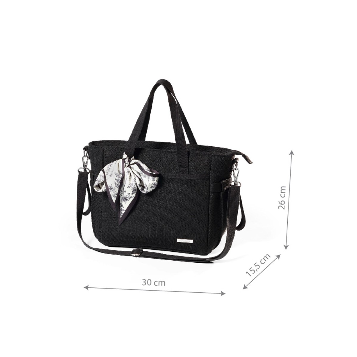CARMEN torba za mame je moderna, urbana torba i savršeni pratilac svake majke. Kombinira kompaktne dimenzije s izvanrednim kapacitetom i stilom. Idealna je za kraća putovanja kada sa sobom želite imati sve najvažnije stvari. Torba ima 9 praktičnih džepova, a uz nju dolazi podloga za presvlačenje i uzica za ključeve ili dudu. Možete ju lako objesiti na kolica, nositi na ramenu ili u ruci – kako želite. Elegantna marama torbi daje dodatni šarm.