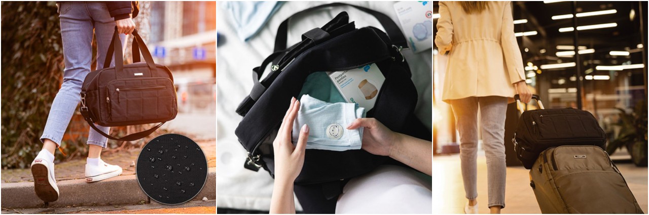 Otkrijte višenamjensku putnu torbu za majku i dijete. Savršena je kao torba za kolica, sportska torba ili za vikend putovanja. Služit će vam dugi niz godina, čak i kada vaše dijete odraste. Možete je koristiti kao torbu za teretanu ili za bazen. Laka je i kompaktna, ali istovremeno prostrana. Unutra ćete pronaći mnogo džepova i pretinaca u koje možete spremiti sve svoje stvari. Njezina veličina odgovara ručnoj prtljazi i kod najrestriktivnijih avioprijevoznika.