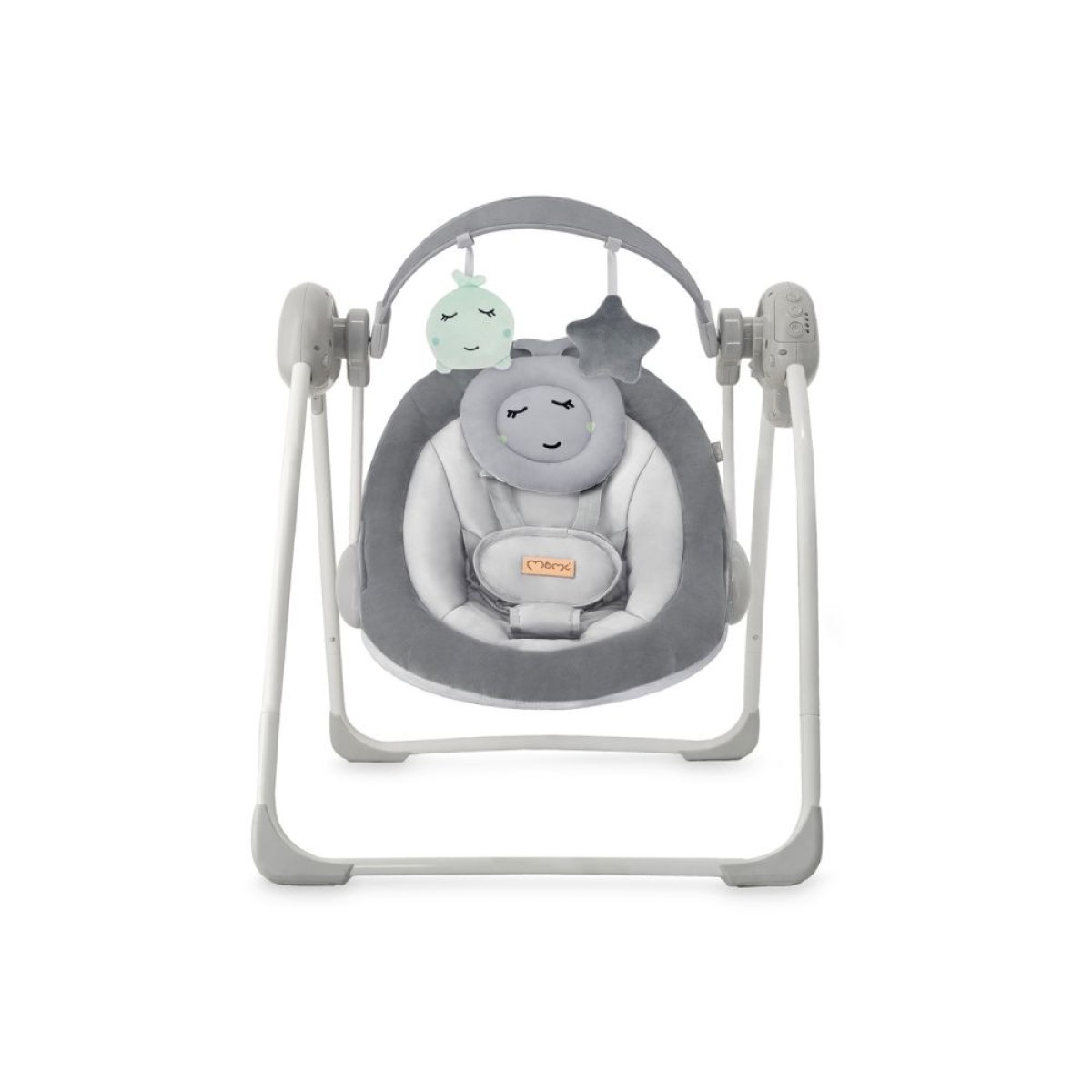 MoMi LISS ljuljačka ima stabilan, sklopivi dizajn koji omogućuje jednostavno spremanje i uštedu prostora. Ima 5 brzina ljuljanja i mjerač vremena koji automatski isključuje uređaj. Šest ugrađenih melodija zabavit će vaše dijete, dok će traka s igračkama dodatno potaknuti igru. Sjedište je izrađeno od mekog materijala, a uključeni jastuk povećava udobnost malog korisnika.