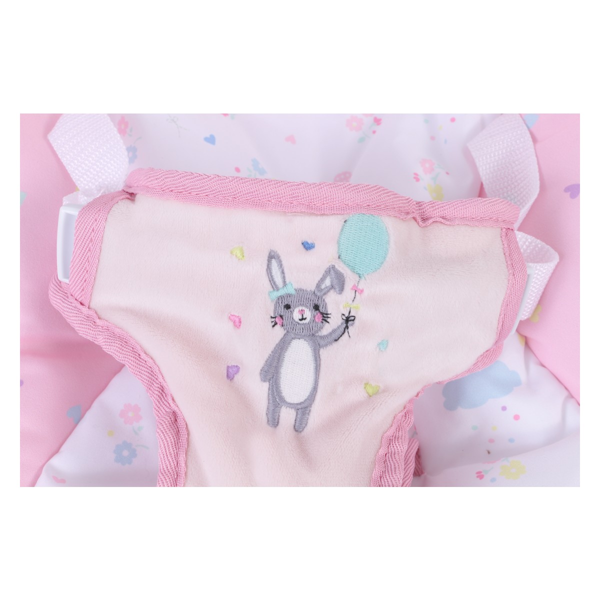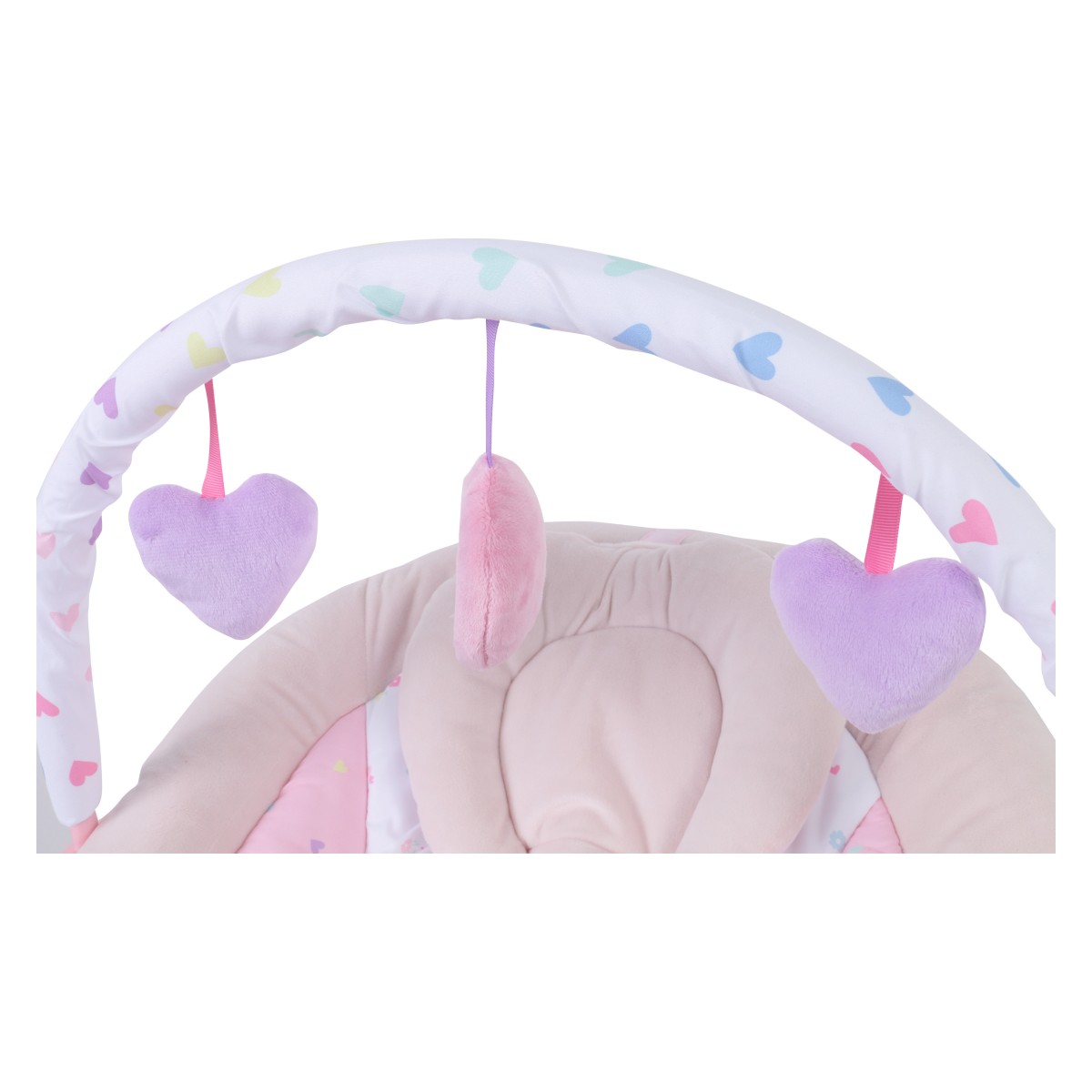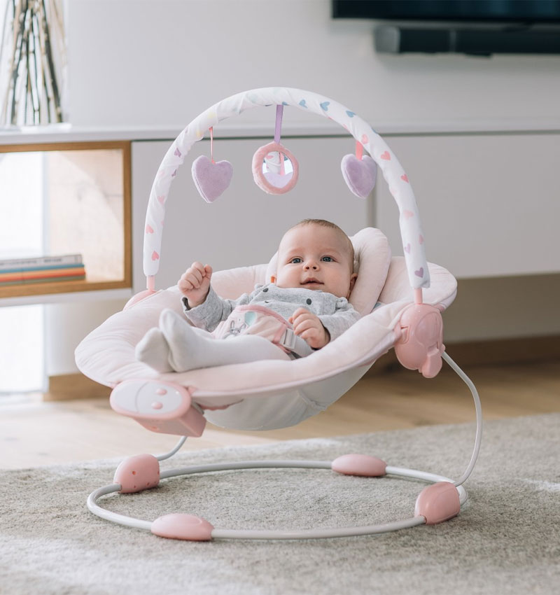 Udobna ležaljka s 3 multisenzorične igračke, mogućnošću nastavljanja u dva ležeća položaja, 3-točkovni sigurnosni pojas, 8 klasičnih melodija (podešavanje glasnoće) i umirujuće vibracije (podesivost jačine vibracija).